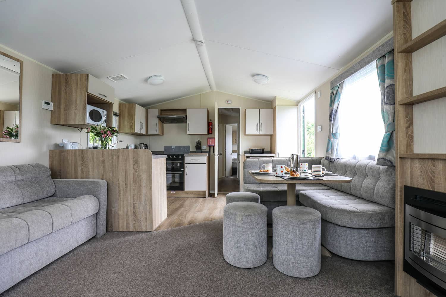 Finished to a very high standard, our Platinum caravans come with high quality fixtures and fittings. There is a coal-effect fire and Freeview TV.