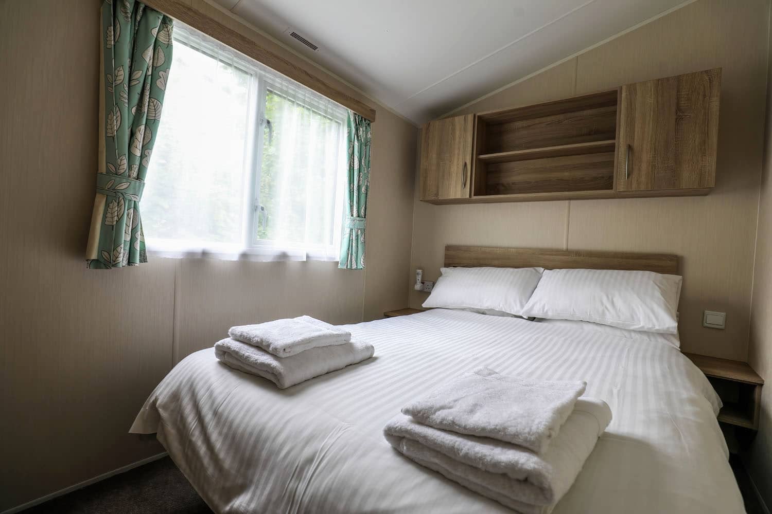 They come with a master double bedroom and two single beds in the two other bedrooms. Each bedroom also has wardrobe space and drawers for storage.