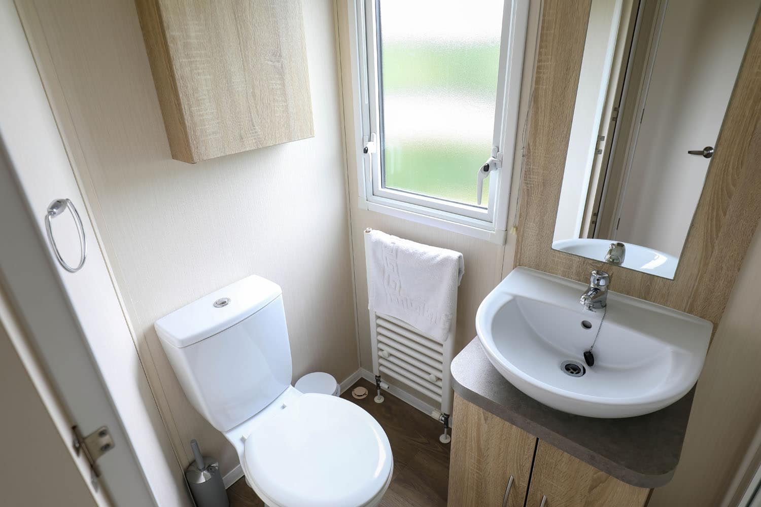There is a large shower room with cubicle and extractor fan as well as toilet, sink and heated towel rail. These caravans also benefit from an extra, separate toilet.